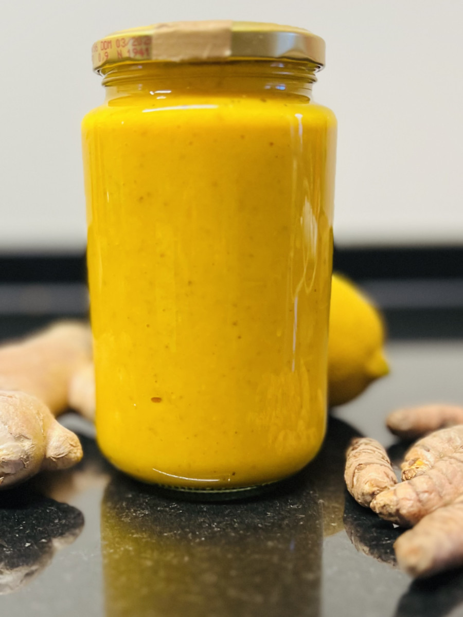 3 Stück frische Kurkuma-Wurzel, gewaschen1 EL naturbelassener Imkerhonig